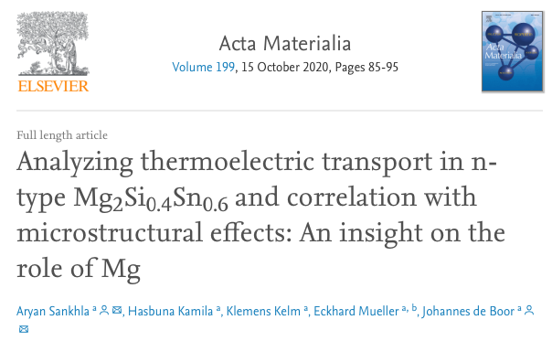 On 8th July 2021 Mila has successfully defended her thesis in front of committee of GIeßen University. Her thesis title “Influence of the Composition of p-type Mg2X (X=Si, Ge, and Sn) on Thermoelectric Properties and Electronic Band Structure lays out promising candidates of p-type materials for thermoelectric, which their efficiency has been so far below the n-type materials. This finding is recommendable as one of promising p-type materials for thermoelectric.